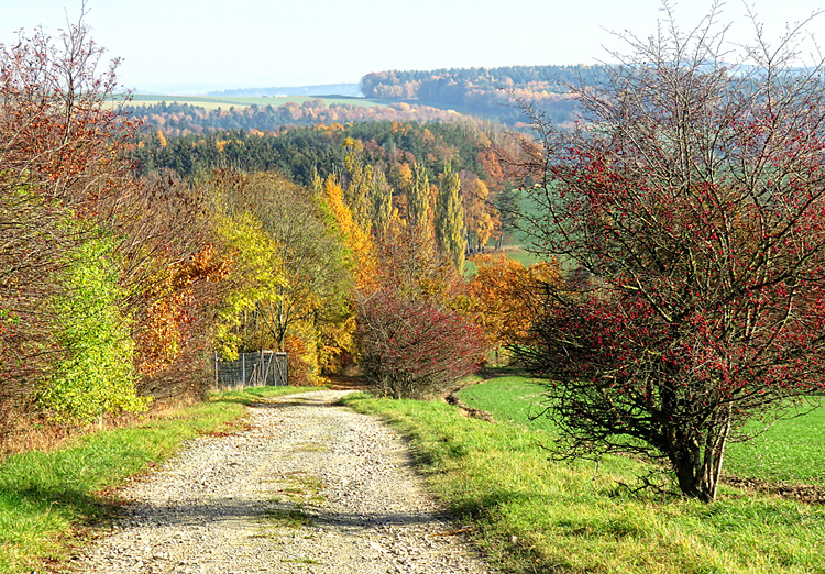 Wanderweg zwischen Erbengrün und Pansdorf an einem freundlichen Herbsttag
