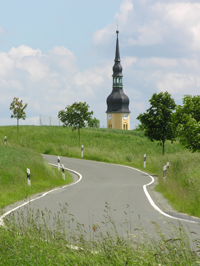Die Hohndorfer Kirche aus etwas ungewohnter Perspektive von der Straße nach Pansdorf aus aufgenommen.